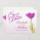 Tulipa roxa de solteiro bonita na cor rústica de cor rosa de cinza, salvo o convite informal do casamento. Edite este convite com suas palavras. Simples convite moderno e romântico, ideal para um casamento de primavera ou tulipa. Design e pintura de tulipa de aquarela de arte fina por Sarah Trett.