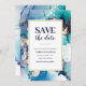 Salve o convite de data com a arte púrpura de tinta azul. © Mini Moi Impressões