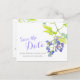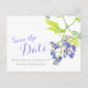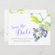 Casamento simples e moderno de batata crepe/videira salve o cartão postal em cinzas clássicas, roxo, verde e branco. Pintura com aquarela original e design por Sarah Trett.