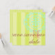 Listras verticais a preto e a fundo com um design azul na frente deste Modelo Salve o Dia ajudam a fazer um anúncio ousado e colorido para o seu dia especial, aproveitem!