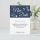 Flórida elegante e romântica Salve o cartão de adiamento do casamento Nova Data, com um belo e delicado design de linha de orquídeas brancas no topo, sobre um clássico fundo azul prussiano. A parte inferior é facilmente personalizável editando os campos de modelo com seus nomes, data e local em uma fonte moderna e simples de bonés azul escura, sobre um simples fundo branco. Para mais personalizações ou encomendas personalizadas, contacte-me livremente em acherryonthecake@hotmail.com (permita 1-2 dias úteis). Este Cartão Salvar a Data faz parte da coleção "Orquídeas Delicadas - Suínos Azuis Prussianos" com muitos itens de coordenação para criar um pacote de casamento único.