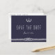 Casamento náutico Guardar os postais Data com âncora branca e texto personalizável - pode alterar o texto, impresso em fundo azul marinho com o padrão da âncora