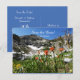 Nossa fotografia de uma bela paisagem montanhosa com um lago gelado e flores silvestres coloridas decora este 50º aniversário de casamento "Salve a Data", anúncio do cartão postal. (ou QUALQUER número de anos) O inverso tem letras brancas sobre fundo azul. Muito elegante e elegante! Você pode facilmente alterar o texto para nomes, tipo de evento, data etc. Perfeito também para renovação de votos ou outra ocasião especial. Foto original de Alan Socolik. Todos os Direitos Reservados © 2015 Alan & Marcia Socolik.