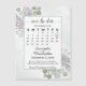 Estes belos cartões magnéticos facilitarão aos seus convidados a salvarem a data do seu próximo casamento. O elegante design de música boho apresenta um quadro branco com um calendário de casamento com um coração à volta do dia especial. Seus nomes são exibidos em ricos e o título é escrito em caligrafia. À volta da armação estão lindas manchas de folhas de eucalipto e flores de lavanda sobre fundo marmoreado. Russo e caseiro, ainda sofisticado, esses cartões magnéticos certamente gostam.