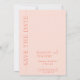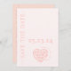 Esta tendência Salvar a placa Data em cores rosadas é a correspondência perfeita da mesma coleção. A design moderna apresenta a cor rosa pincelada clássica e a tipografia moderna misturada à caligrafia elegante. O cartão tem um código QR em forma de coração que você pode fazer em www.qrcodechimp.com onde ele também rastreia o código qr digitalizado pelos convidados; você pode usá-lo para seu site de casamento ou sua lista de presentes de casamento.