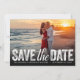 O anúncio do seu casamento. Use sua imagem horizontal do cheio com "Salvar nossa Data" sobre sua foto. Um gradiente preto aparece na parte inferior da placa para fazer o tipo sobressair. Se você não precisa do gradiente, apenas elimine-o. Personalize seus nomes e data na frente e atrás. Há outra placa com um gradiente branco com o tipo escuro disponível.