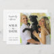 Este casamento na moda e moderno salve a data que modelo tem um design brilhante, quente e limpo. Use as ferramentas de design para personalizá-lo e torná-lo exclusivamente seu com sua foto favorita!