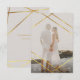 .Salve o Anúncio de casamento de fotos de data. Moldura geométrica moderna assimétrica em folha de ouro falso em tendências sobre foto de sangria de cheio. Layout totalmente versátil do estilo do faça-você-mesmo. Ajuste facilmente o tamanho e posicionamento da foto e do quadro ou altere o estilo da fonte e o posicionamento dos campos de texto personalizados no modo Personalizar avançado. Os filtros gradiente e transparente são usados para a exibição de contraste do texto leve, mas eles podem ser removidos ou alterados no modo avançado.