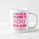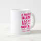Jumbo Alguns dias, uma xícara de joe de tamanho normal simplesmente não vai funcionar. Quando precisar de uma dose extra de cafeína, pegue a sua caneca de café extragrande de Zazzle. Vai acomodar um cheio de 20 onças de Venti. Perfeito para sopa, cereal, sorvete ou chili também! Esta caneca gigante apresenta uma alça em forma de C para um corte confortável. Dimensões: Altura: 4,5" Diâmetro: 3,9" Capacidade: 20 onças de micro-ondas e lava-louças Forte, de cerâmica Cumprir ou exceder os requisitos do FDA para o Designer de Segurança de comidas e bebidas Dica: Para garantir o impressão de alta qualidade, note que a área de design personalizável deste produto mede 4" alto x 10,5" de largura