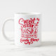 Jumbo Alguns dias, uma xícara de joe de tamanho normal simplesmente não vai funcionar. Quando precisar de uma dose extra de cafeína, pegue a sua caneca de café extragrande de Zazzle. Vai acomodar um cheio de 20 onças de Venti. Perfeito para sopa, cereal, sorvete ou chili também! Esta caneca gigante apresenta uma alça em forma de C para um corte confortável. Dimensões: Altura: 4,5" Diâmetro: 3,9" Capacidade: 20 onças de micro-ondas e lava-louças Forte, de cerâmica Cumprir ou exceder os requisitos do FDA para o Designer de Segurança de comidas e bebidas Dica: Para garantir o impressão de alta qualidade, note que a área de design personalizável deste produto mede 4" alto x 10,5" de largura