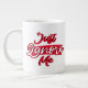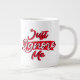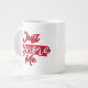 Jumbo Alguns dias, uma xícara de joe de tamanho normal simplesmente não vai funcionar. Quando precisar de uma dose extra de cafeína, pegue a sua caneca de café extragrande de Zazzle. Vai acomodar um cheio de 20 onças de Venti. Perfeito para sopa, cereal, sorvete ou chili também! Esta caneca gigante apresenta uma alça em forma de C para um corte confortável. Dimensões: Altura: 4,5" Diâmetro: 3,9" Capacidade: 20 onças de micro-ondas e lava-louças Forte, de cerâmica Cumprir ou exceder os requisitos do FDA para o Designer de Segurança de comidas e bebidas Dica: Para garantir o impressão de alta qualidade, note que a área de design personalizável deste produto mede 4" alto x 10,5" de largura