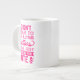 Jumbo Alguns dias, uma xícara de joe de tamanho normal simplesmente não vai funcionar. Quando precisar de uma dose extra de cafeína, pegue a sua caneca de café extragrande de Zazzle. Vai acomodar um cheio de 20 onças de Venti. Perfeito para sopa, cereal, sorvete ou chili também! Esta caneca gigante apresenta uma alça em forma de C para um corte confortável. Dimensões: Altura: 4,5" Diâmetro: 3,9" Capacidade: 20 onças de micro-ondas e lava-louças Forte, de cerâmica Cumprir ou exceder os requisitos do FDA para o Designer de Segurança de comidas e bebidas Dica: Para garantir o impressão de alta qualidade, note que a área de design personalizável deste produto mede 4" alto x 10,5" de largura