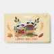 Um crachá bonito e horizontal da biblioteca fundamental da escola passa por dois bonitos guaxinins com livros. Personalize-o com o nome do professor. Adicione um jardim ou um clipe de metal, se desejar. © ArianeC Ilustrações — Todos os direitos reservados