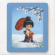 Menina de gueixa pequena bonito Mousepad com árvore da flor de cerejeira