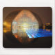 O centro de Beijing para artes de palco aparece como algo fora da guerra dos mundos iluminados acima na noite e refletidos na piscina que bordadura ele.