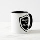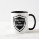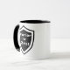 Guerreiro por Cristo caneca de dois tons. Partilhe o seu compromisso cristão com esta caneca de logotipo do escudo.