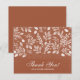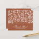 Estas notas de terracotta flat, agradecimentos, são um excelente valor impresso em papel de 110 lb e apresentam um padrão de folha branca, as palavras "Obrigado" e o seu nome em letras brancas. Muito obrigado, anotações para seu casamento, chá de panela, chá de fraldas, aniversário, aniversário, formatura ou qualquer evento especial. Os envelopes brancos são opcionais. Mede 4,5" x 5,6", mas você pode escolher entre 3 tamanhos de papel. MAIS CORES na nossa coleção.