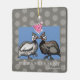 Como pode um mesmo começar a ter uma celebração sem Guinés? Bárbaro, direito? Bem, nós podemos ajudá-lo a pôr certo aquele com este ornamento cerâmico lunático do feriado que comemoramos todos amigo, o galinha-do-mato amado. Contra um campo de polkadots neutros, este duo das Guinés trará o amor e os sorrisos a sua celebração do feriado.