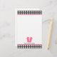 Artigos de papelaria que caracterizam uma beira cinzenta do guingão sobre a parte superior e a parte inferior com guarnição cor-de-rosa. Personalize com seu nome no fundo sob a ilustração de chinelos cor-de-rosa.