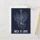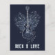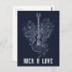 Este design azul escuro apresenta um esboço de um eletroguitarra colocado em frente a um coração feito de notas musicais. Há uma mensagem personalizável "rock n love". Este design é excelente para amantes de músicos e rock & roll.