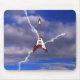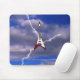 O relâmpago voa de suas pontas do dedo quando você joga a guitarra? Então este mousepad é para você! Caracteriza uma guitarra do estilo do V-corpo do vintage com o relâmpago que flui de seu corpo no céu nebuloso que cerca o.