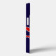 Um vetor de guitarra azul com raio vermelho e iniciais personalizadas