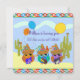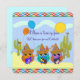 Três corujas bonitinhas e coloridas com guitarras e um balão sombrio e feliz acompanham esse convite de festas de crianças. O texto na parte frontal e os textos na parte traseira são objetos modelo e podem ser facilmente alterados em seu texto pessoal.