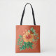 Uma Gumamela Flor Tote Bag com fundo laranja.