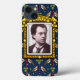 A arte original de ZoeSPEAK neste iPhone 13 Case apresenta um retrato do compositor Gustav Mahler. O retrato é uma fotografia feita à mão, cercada por uma ilustração de um ornamentado de fitas douradas e pequenos pássaros. O quadro está sobre um fundo de papel de parede de azul marinho, com linhas verticais de fitas vermelhas entrelaçadas, passarinhos marrons e folhas verdes.