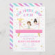 Vamos sacudir, tropeçar, saltar e jogar! Torne o aniversário do seu ginasta inesquecível com este convite de aniversário de ginástica super fofo. Apresentando três ginastas em um feixe de balanço rosa, estrelas cintilantes cintilantes e cores pastéis como rosa, roxo e lacre, este design é perfeito para um cheio de celebração de alta energia de cartros, cupcakes e diversão! Ideal para raparigas que adoram dançar, jogar esporte, saltar, sacudir, tropeçar, e brilhar, este convite é um sucesso tanto para crianças como para pais. Personalize facilmente com os detalhes da sua festa — nomes, data, hora e local. Excelente para 5, 6, 7, 8 aniversários ou qualquer idade que exija uma comemoração de ginástica. Prepare-se para pousar com este convite fabuloso!