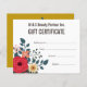 Modelo de certificado de presente floral do designer de tendências para você preencher com seu próprio texto e logotipo comercial. Escreva facilmente o texto de exemplo com o seu próprio e faça o upload do logotipo da sua empresa para dar esse acabamento profissional extra! Parece que contratou um designer gráfico pessoal de negócios, mas não o fez - bem como só tem que pagar uma fração do custo desses certificados de oferta de cor de cheio imprimíveis Preencha os detalhes de sua própria empresa sobre o texto do modelo. Todo o texto pode ser adaptado ou movido como quiser. Se quiser continuar a mover, redimensionar, adicionar ou alterar o texto, basta pressionar o botão 'personalizá-lo'. Muitos outros designs populares de vale-presente/cartão-presente disponíveis na minha loja zazzle. Se você está atrás de designs especialmente encomendados ou designs alterados especialmente para suas necessidades, então me contate através do zazzle mail.