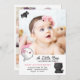 "Um Pequeno Boo Fez Sua Deborda", uma menina rosa e branca, anunciada para o parto no Dia das Bruxas, completa com um giro fantasma kawaii com um arco rosa, e um gatinho kawaii e um morcego fazer suas aparências também. Quatro fotos - uma grande na frente e três fotos pequenas na parte traseira. As estatísticas de nomes e natalidade vão à frente e há espaço para os detalhes familiares e um obrigado que você retorna. Design composto por Holiday Hearts Design (direitos reservados). Modelo com espaço reservado para fotos cortesia de Unsplash.