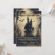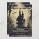 O convite da festa de Halloween apresenta um design assustador e imersivo com uma casa assombrada no meio de uma floresta escura e sombria. A casa é cercada por árvores torcidas e sem folhas, com morcegos circulando no céu sujo e cheio de neblina. A cena é feita assombrando cinzentos e matizes amarelados, criando um brilho fantasmagórico que aumenta a atmosfera de refrigeração. No topo da frente, a legenda ousada e brincalhona diz: "Você é Convidado a uma Bash Halloween Assombrada!" O texto destaca-se contra o fundo assustador, dando o tom perfeito para uma emocionante celebração do Dia das Bruxas. Abaixo da legenda, há espaço para a data e o local do evento, que podem ser personalizados para ajustado de seus detalhes. Na parte inferior da frente, há uma linha de texto personalizada adicional, que poderia incluir notas divertidas como "Figurinos Necessários!" ou "Cuidado com Surpresas!" O verso do convite continua o tema assombrado com uma versão sutil, desbotada da floresta assustadora e assombrada cena da casa, dando espaço extra para qualquer texto adicional. Esta área é perfeita para incluir instruções especiais, notas divertidas ou quaisquer detalhes de última hora para seus convidados. Além disso, os detalhes de RSVP também são incluídos no verso, oferecendo ampla margem para especificar informações de contato e um prazo de RSVP. O convite combina maravilhosamente a estética assustadora com elementos de texto totalmente personalizáveis, fazer ideal para a sua "Bash Halloween Assombrada!"