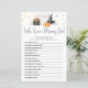 Traga risos e diversão para o seu chá de fraldas com o nosso pequeno Boo de Halloween "Quem conhece melhor a Mamãe?" Jogo do chá de fraldas! Parte da coleção do "Halloween Little Boo Quase Devido", este jogo apresenta designs divertidos do Halloween. É uma maneira fantástica de envolver seus convidados enquanto respondem perguntas divertidas para ver quem conhece a melhor mãe! Este jogo personalizável adiciona um toque assustador, mas doce, ao seu chá de fraldas temático do Dia das Bruxas, criando memórias duradouras à medida que os convidados competem para ganhar. Perfeito por adicionar diversão interativa ao seu evento enquanto celebra a conexão especial entre a mãe e seus entes queridos.