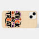 Ce design d’Halloween capture l’esprit festif et fantaisiste de la saison avec une palette de couleurs vives et un thème ludique. Les mots “TRICK OR TREAT” sont affichés en grand au centre, avec des lettres noires audacieuses surmontées de touches orange, donnant l’impression d’une typographie dansante. Autour du texte, une collection éclectique d’icônes emblématiques d’Halloween, notamment des citrouilles souriantes orange vif avec des découpes noires pour les yeux et la bouche, des chauves-souris noires aux ailes déployées, des bonbons violets et oranges en forme de bonbon ou pièce, une toile d’araignée blanche dans le coin supérieur droit avec une petite araignée suspendue, et plusieurs petits fantômes violets flottants. L’ensemble évoque une ambiance joyeuse et enfantine propre à la célébration du 31 octobre.