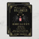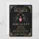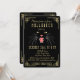 Halloween Hissing Cat Black Elegant Invitation. Negro e ouro (o ouro não é ouro real, mas cor). Gato sibilante com olhos ouros, dentes brancos, língua e nariz cor-de-rosa. Fundo preto, borda do estilo deco de arte ouro. Texto do ouro. Elegante, moderno e divertido.