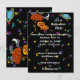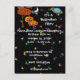Convite para o Halloween Apresentando um Céu Negro, Lua Crescente, Saturno Colorido, Nuvens e estrelas mais coloridas abundam. Família de Abóbora Bonita ao lado de uma árvore com cor de queda laranja Folhas e um Grande BOO! Com os olhos no topo das cartas, todos convidando você para uma festa de colheita de Halloween mais assustadora, mas não muito assustadora. Perfeito para a festa do Dia das Bruxas da Igreja!