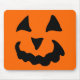 Um brinco de abóbora preto e laranja. Um bronzeador feliz.