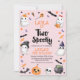 Dia das Bruxas Rosa Dois segundos aniversários Spooky Convite para o Feliz Dia das Bruxas O segundo convite de aniversário da garota com quatro fantasmas, abóbora, morcegos, doces e muito mais em um fundo rosa. Este convite de segundo aniversário de Halloween é ideal para uma festa de aniversário de outubro.