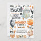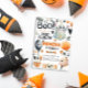 Concurso de Aniversário do Halloween Spooky Ghost... convite para celebrar o seu aniversário de Halloween. Convide pessoas para a sua festa com este design incrível. Gato bonito saindo da abóbora com faixa de halloween, luas e morcegos é uma combinação tão excelente para o aniversário das crianças!