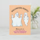 Bonito convite para fantasmas de Halloween e Munchy. Há um padrão fantasma no fundo laranja no verso. Todos os textos e números estão prontos para serem personalizados.