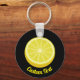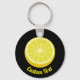 Ícone de limão a meio. Cor de fundo personalizada. Texto personalizado de ambos os lados.