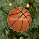 Design de basquete, ornamento personalizado da árvore de natal com foto. Design HAMbyWhiteGlove Este ornamento personalizável tem um design de baseball branco, vermelho e preto com o nome do seu filho de um lado e uma fotografia do seu filho rodeado de uma borda laranja do outro lado.