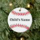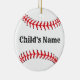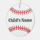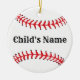Design de baseball, ornamento personalizado da árvore de natal com foto. Design HAMbyWhiteGlove Este ornamento personalizável tem um design de baseball branco, vermelho e preto com o nome do seu filho de um lado e uma fotografia do seu filho rodeada de uma borda vermelha do outro lado.