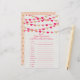 This baby shower "Word Scramble" game is perfect for anyone having a baby shower around Valentin's day. Simply give these game cards out to your guests to play at the shower, whoever unscrambles the words first, wins a prize of your choice! Matching party items can be found in the collection. Answers: 1) Diapers 2) Baby Shower 3) Wipes 4) Nursery 5) Blanket 6) Pacifier 7) One-sie 8) Swaddle 9) Activity Mat 10) Teether 11) Bassinet 12) Bottle 13) Rattle
