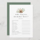 Este que conhece o melhor cartão de chá de fraldas de mamãe da Coleção Hannah é perfeito para um chá de fraldas de quintal ou borrão de bebê. Este fofo design com um tema animal neutro em relação ao gênero apresenta um bebê urso com espécimes do gênero Bombus spp., flores brancas e verde-verão. Personalize as perguntas, se quiser. Escolha placas impressas ou um arquivo imprimível que você pode impressão localmente ou em casa, ou ambos!