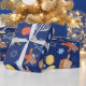 Snowmen de cor aquática, menorah, sufganiyot, sonhos e mais decoração deste divertido papel de embrulho de Chanucá.
