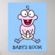 Um bebê rosa feliz vestindo meias azuis. Poster divertida para decorar o quarto do seu bebê. Personalize com o nome do seu bebê. Arte de desenho original de Taylor Addams.