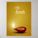 Shubh Diwali Illustration: red diya (uma lâmpada de óleo índio em forma de xícara) com uma mandala ornamental indiana e a saudação escrita em Sânscrito.