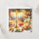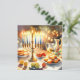Ilustração de aquarela de Hanukkah. Uma mesa bem arrumada para uma comemoração festiva, com uma menorah tradicional com velas iluminadas. Luz suave e quente, enquanto decorações de férias adicionam um toque de alegria. Luzes quentes criando uma atmosfera acolhedora e convidativa.